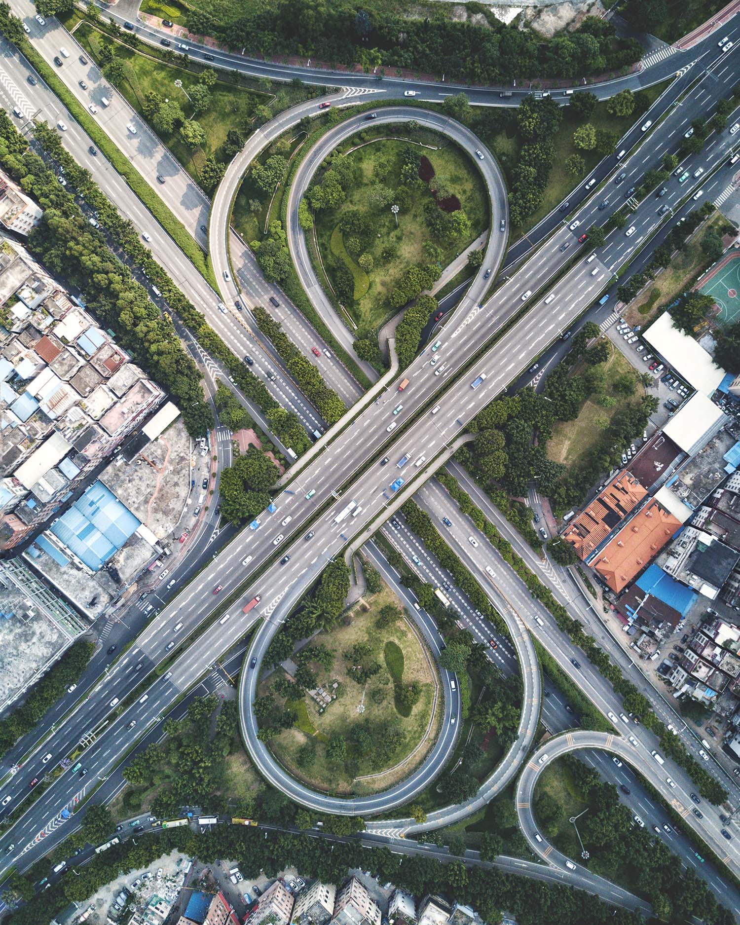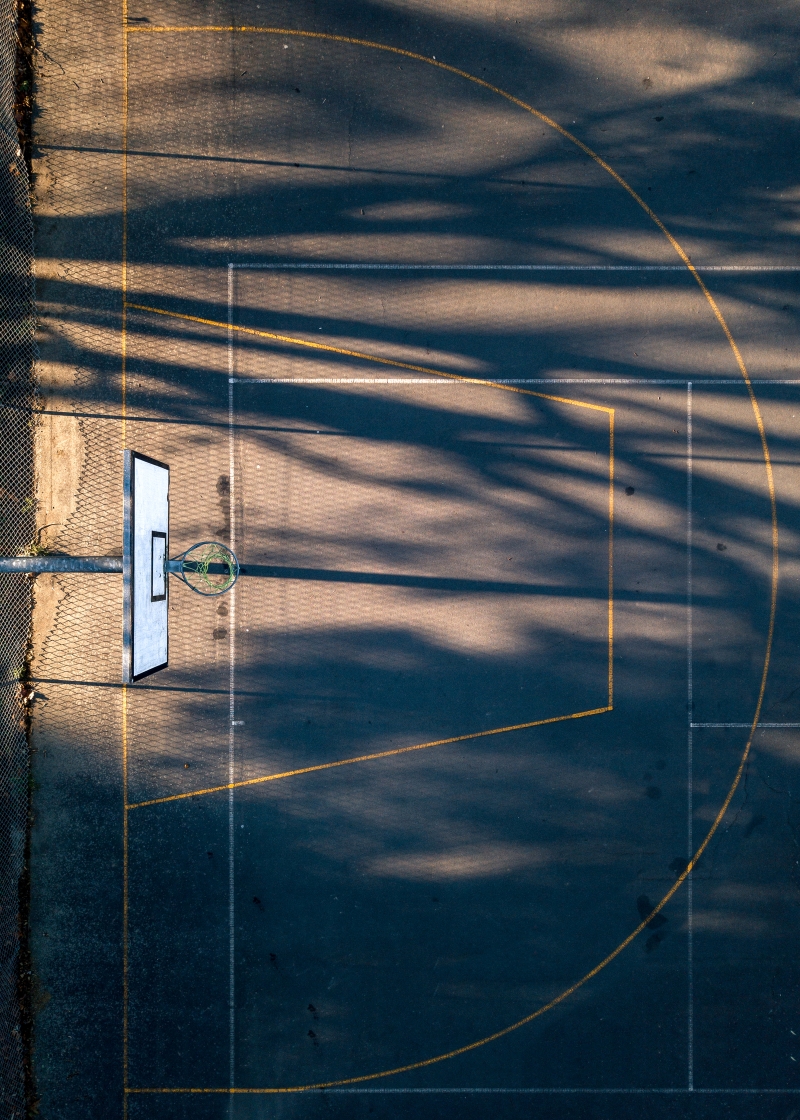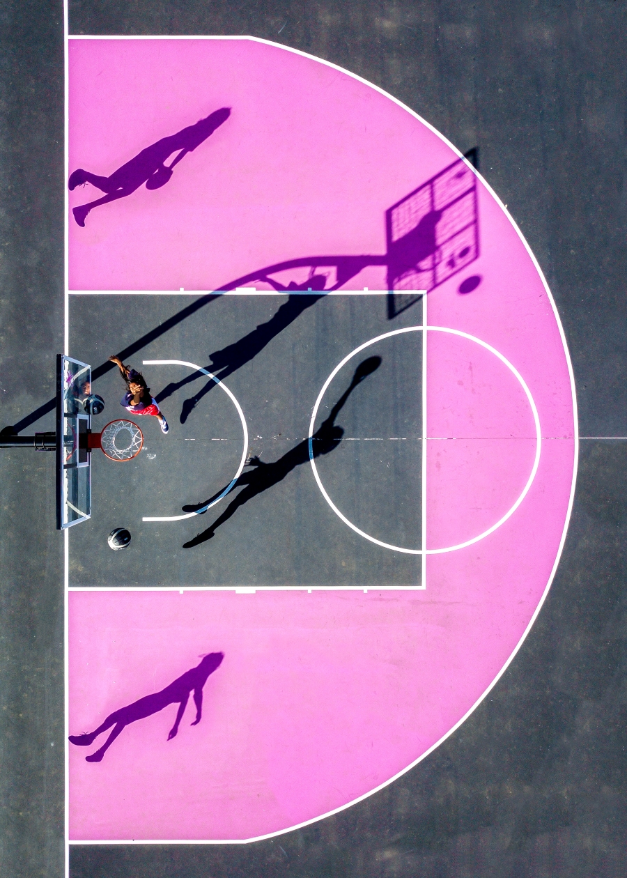 La galardonada fotógrafa Petra Leary creó su serie Daily Geometry entre 2017 y 2018. La colección destaca las sorprendentes formas y simetrías de las canchas de baloncesto de Nueva Zelanda. La obra, muy influenciada por la experiencia de la fotógrafa en diseño gráfico, es brillante, audaz y llamativa.